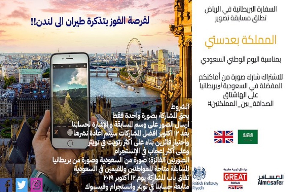Submit a picture or your favourite place in Saudi Arabia or UK on Twitter or Instagram using hashtag #الصداقة_بين_المملكتين and tagging the Embassy’s Twitter and Instagram accounts.