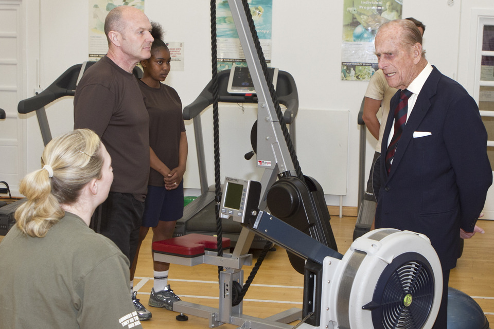 The Duke of Edinburgh meeting staff and patients at the Defence Medical Rehabilitation Centre at Headley Court [Picture: Senior Aircraftman Tommy Axford, Crown copyright]