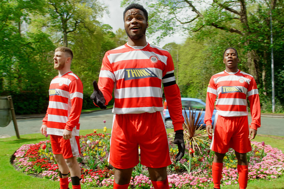 As part of the launch of a major new THINK! campaign, Radio One DJ and co-host of ‘That Peter Crouch Podcast’, Chris Stark, has joined forces with the County Football Association (FA) to deliver a passionate team talk to a nation of football lovers to keep them safe on the roads, filmed at the Corinthian-Casuals ground in Tolworth.