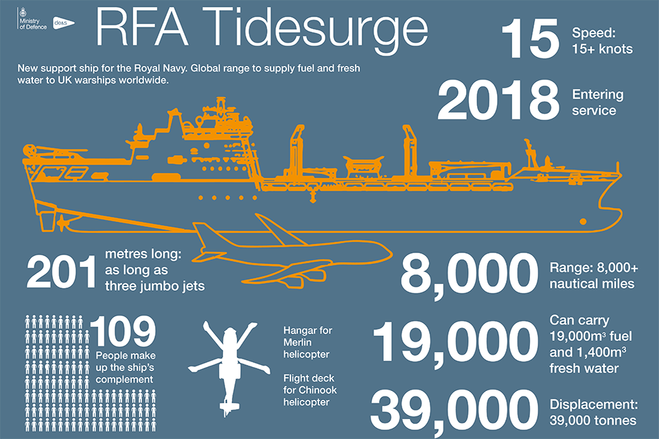 The 39,000-tonne tankers can carry up to 19,000 cubic metres of fuel and 1,400 cubic metres of fresh water in support of Royal Navy operations all over the world.