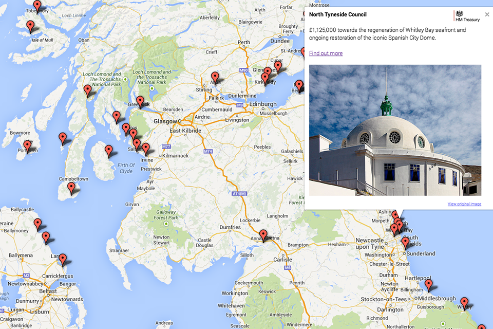 Map of projects that have benefitted from Coastal Communities fUNDING