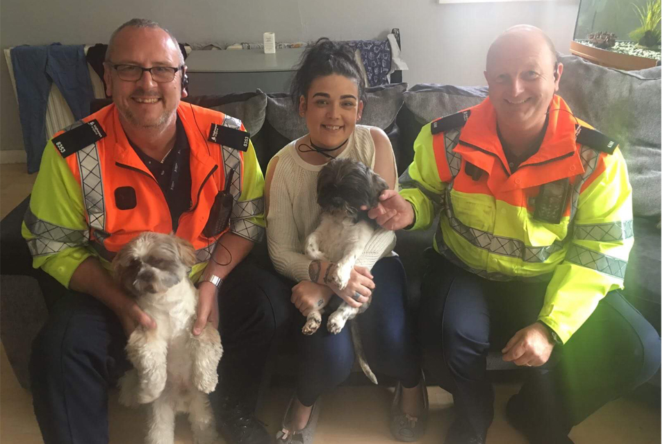 A dog lover from Greater Manchester has praised two Highways England traffic officers for reuniting her with her missing companion Bailey.