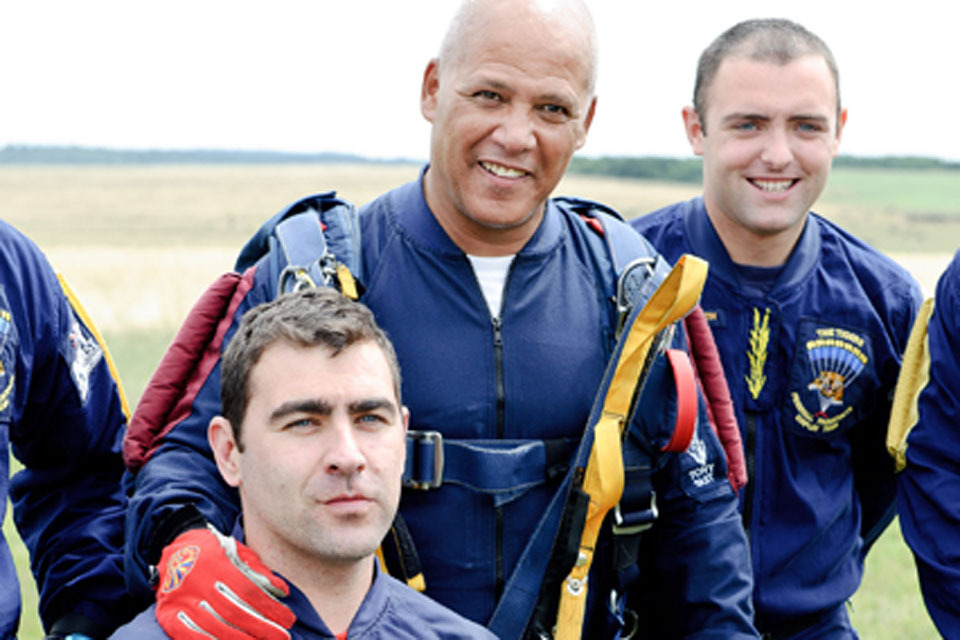 The jump was organised by The Soldiers’ Charity, in partnership with ‘The Tigers’, The Princess of Wales’s Royal Regiment’s renowned parachute display team. It took place at Netheravon, the Centre of Excellence run by the British Army Parachute Association, in Wiltshire on Friday 30 July 2010.