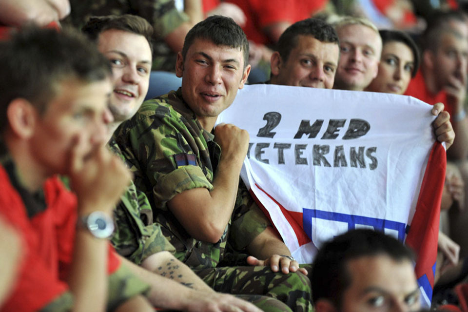 Service personnel enjoy the England friendly against Mexico at Wembley [Picture: Cpl Rupert Frere RLC, Crown Copyright/MOD 2010]