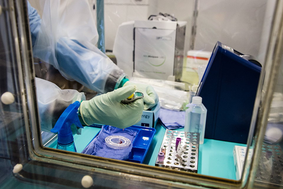A medical technician tests blood samples during a training exercise [Picture: Graham Harrison, Crown copyright]