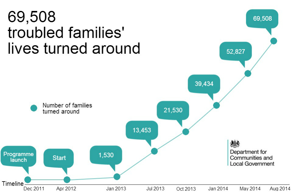 It is a fantastic achievement to have built up troubled families teams so quickly so that 117,000 families are now being worked with and 69,000 have already been turned around.