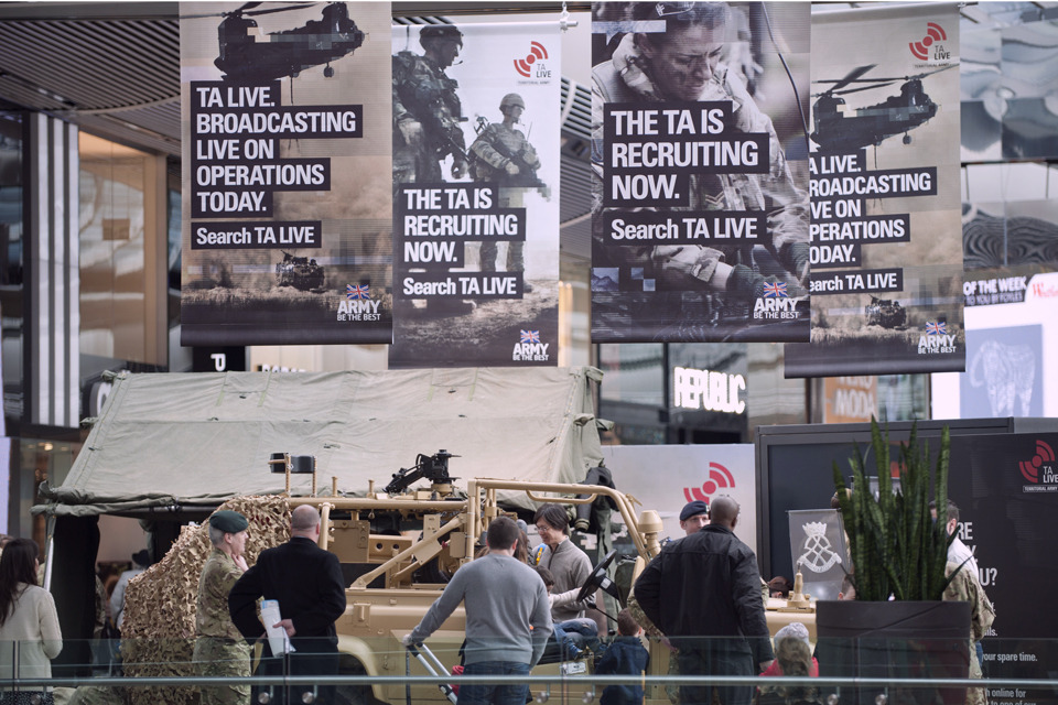 Last weekend's TA LIVE ads were shown on a giant screen at Westfield Shopping Centre in Stratford, east London [Picture: Sergeant Adrian Harlen, Crown copyright]