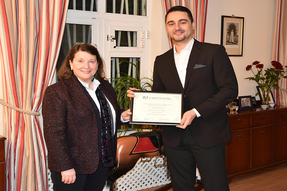 Ambassador presented Eldar with the customary certificate confirming that he had completed his scholarship.