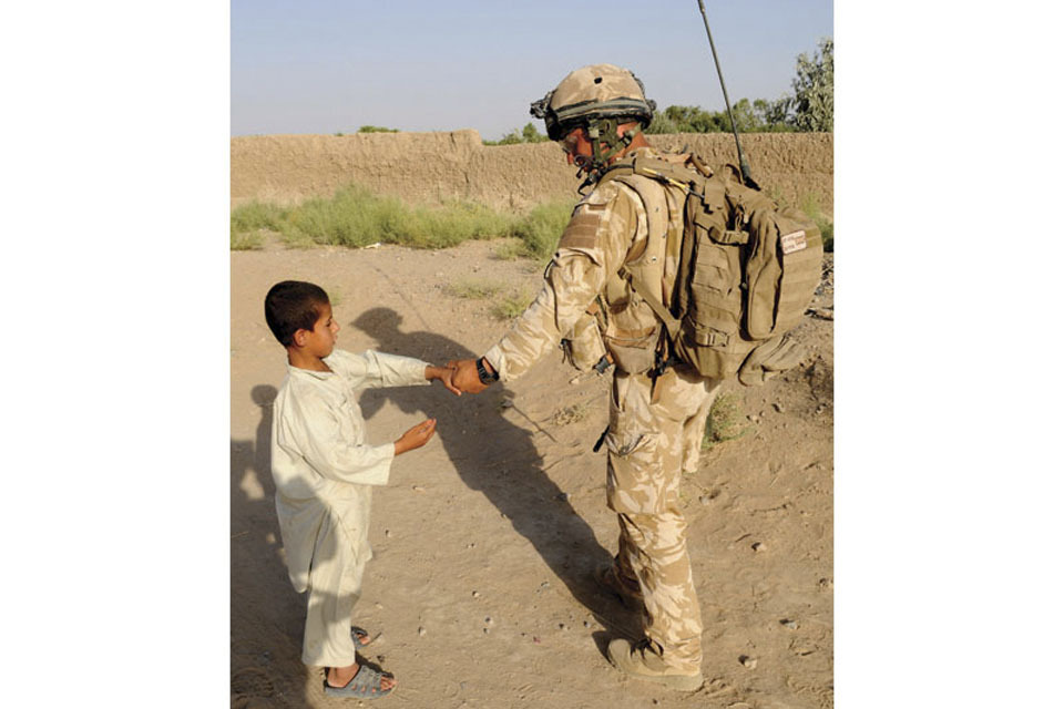 A RAF Regiment Gunner engages with an Afghan child while out on patrol [Picture: Crown Copyright/MOD 2010]