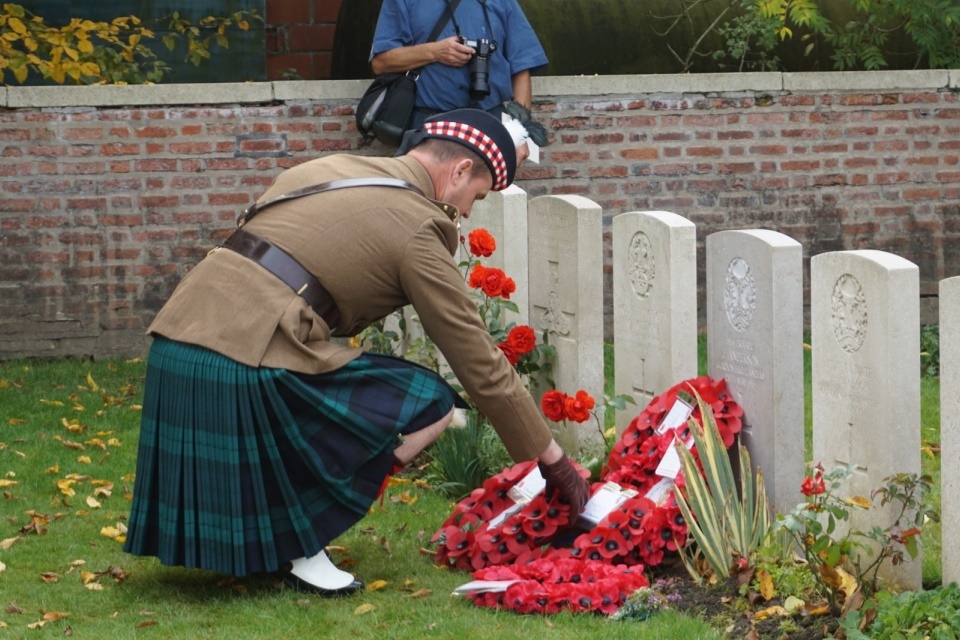 Captain Gary Main laying a wreath at Rifleman Evans’s graveside on behalf of the 4 Scots Regiment. Crown Copyright. All Rights Reserved.