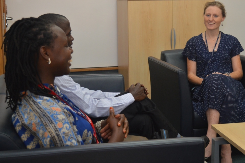 Acting High Commissioner, Mary Shockledge at the meeting with Uganda's QYL award winners Diana Nakaweesa and Deo Ssekandi.