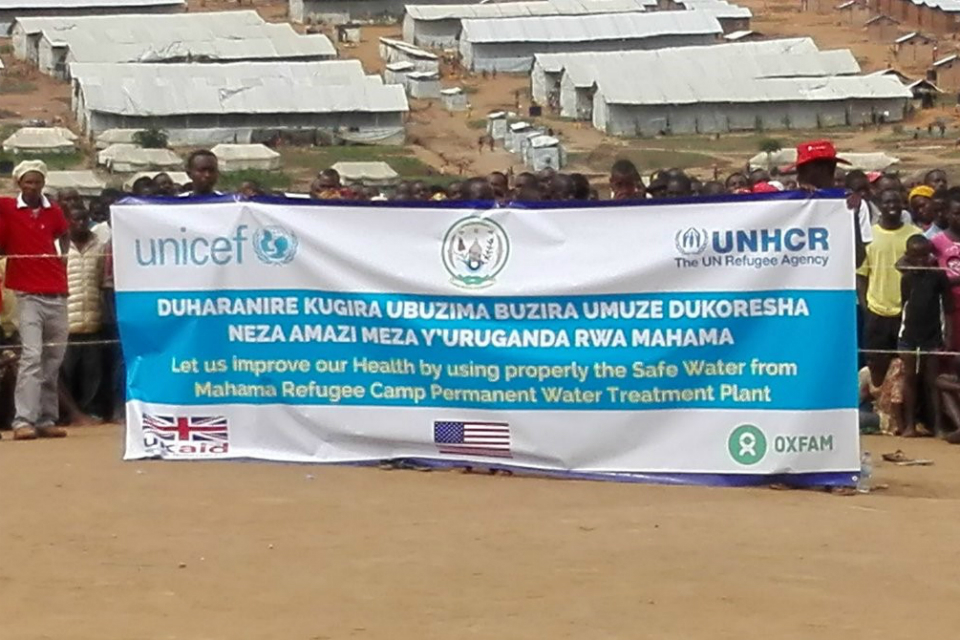 Instead of transporting water to the camp with trucks – which is very expensive – UK Aid contributed over Rwf 600 million for the construction of a Permanent Water Treatment Plant in the camp, which was led by Oxfam and inaugurated by Mukantabana Seraphine, Minister for Disaster Management and Refugee Affairs, in November 2016.