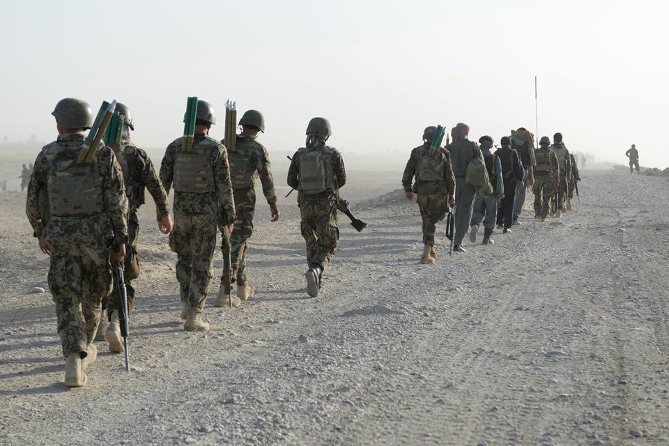 Afghan soldiers undertake a clearance operation in Nahr-e Saraj [Picture: Sergeant Barry Pope, Crown copyright]