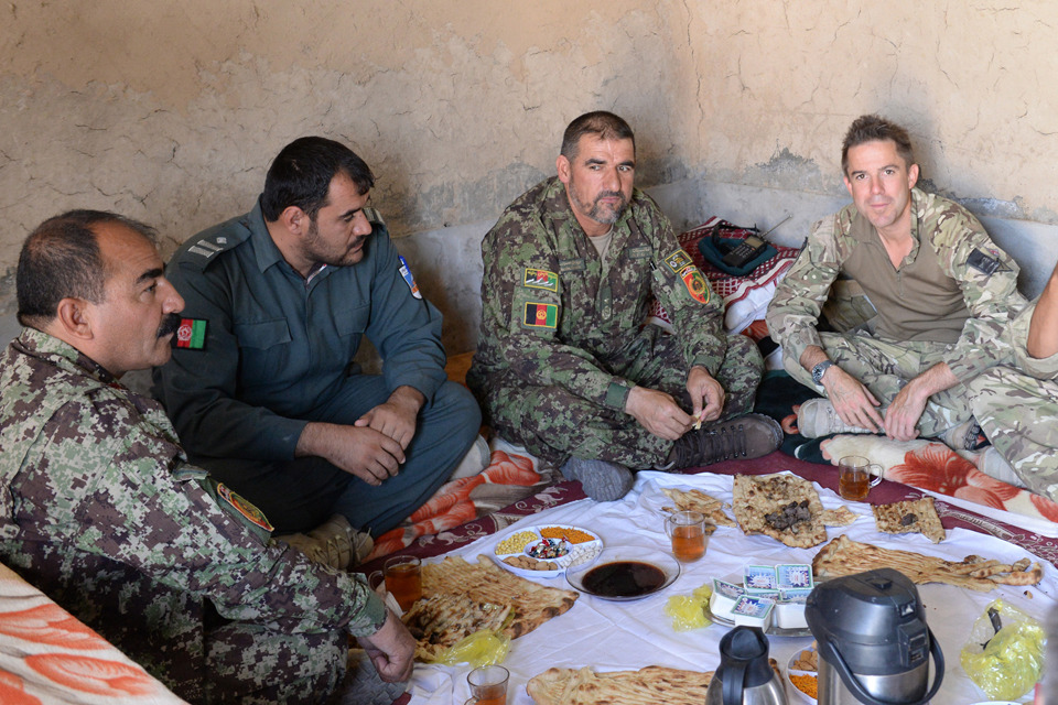 From right: British adviser Lieutenant Colonel Tom Bewick sits next to Brigadier General Mohammad Nasim of the Afghan National Army [Picture: Sergeant Barry Pope, Crown copyright]