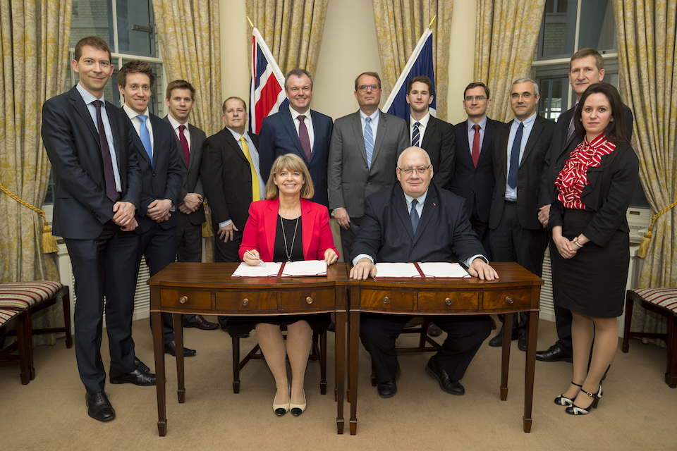 Defence Minister Harriett Baldwin with her French counterpart Laurent Collet-Billon signing the agreement with MBDA. Crown Copyright