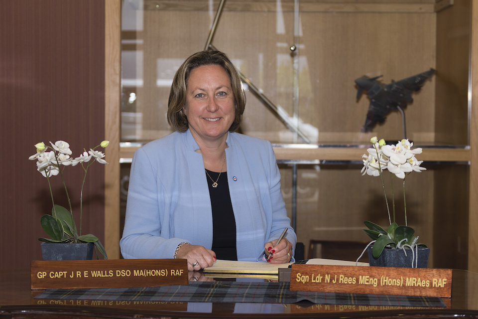 Defence Minister Anne-Marie Trevelyan signing the RAF Lossiemouth visitors' book.