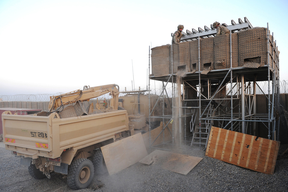 Sappers from 22 Engineer Regiment dismantle one of Forward Operating Base Shawqat's sangars [Picture: Corporal Si Longworth RLC, Crown copyright]