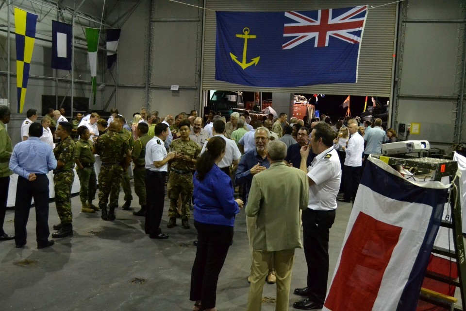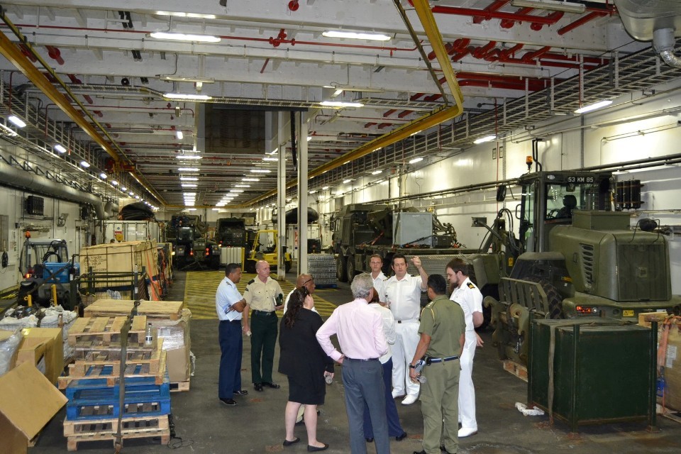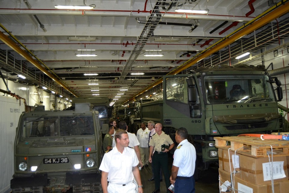 Mounts Bay of the Royal Fleet Auxiliary hosted members of the Belize Coast Guard, Belize Defence Force, National Emergency Management Organization (NEMO) and Belize Red Cross on board to share their recent involvement and support operation’s that were carried out following the destruction caused by Hurricane’s Irma and Maria last year, which brought devastation to many islands in the east of the Caribbean.