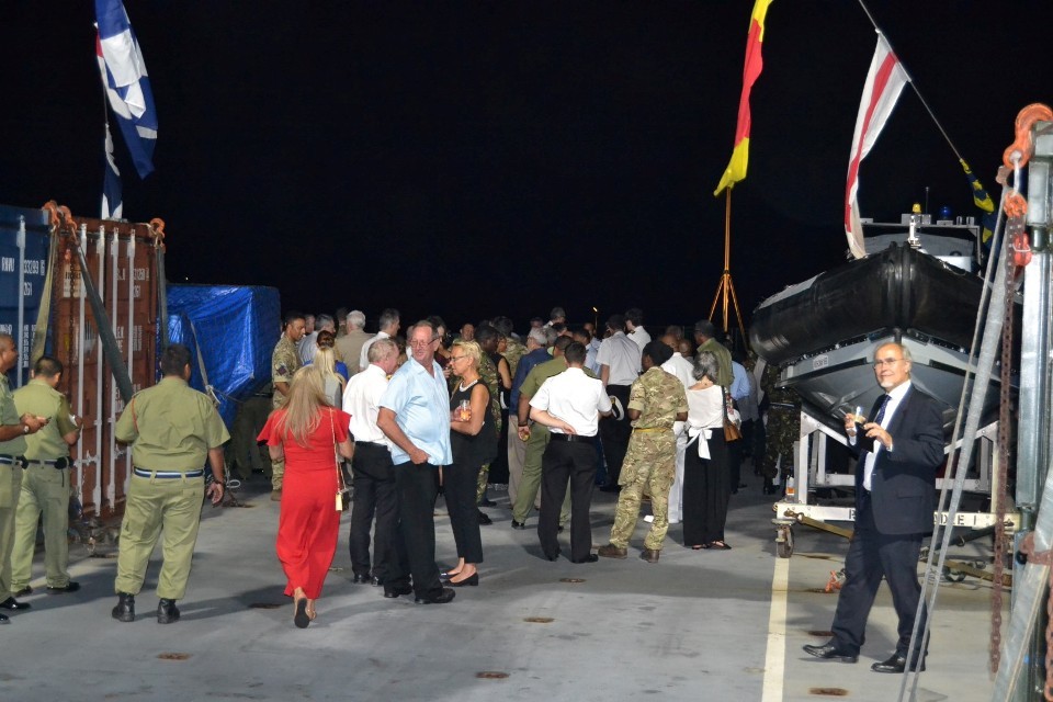 Guests including members of the Belizean Chevening Alumni, enjoy the reception aboard RFA Mounts Bay