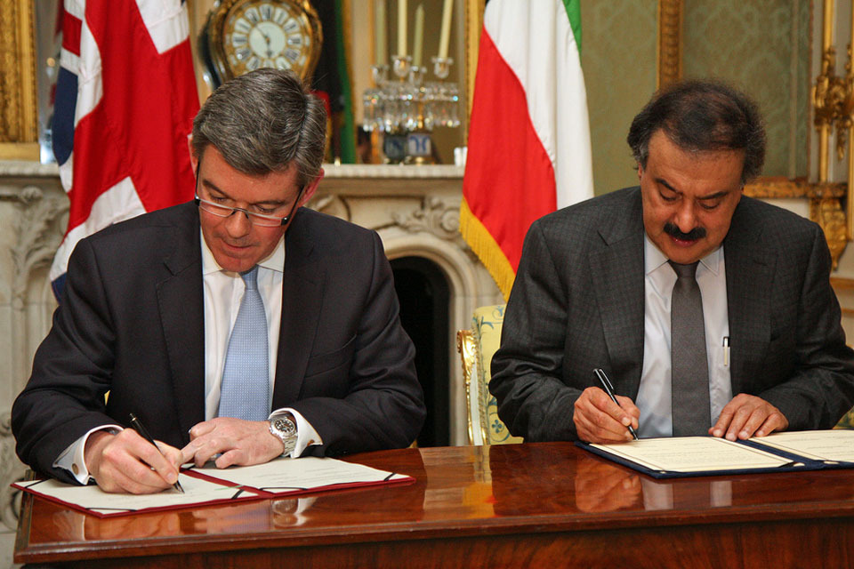 Foreign Office Minister Hugh Robertson and His Excellency Khaled Al Jarallah sign the UK-Kuwait Joint Steering Group Action Plan