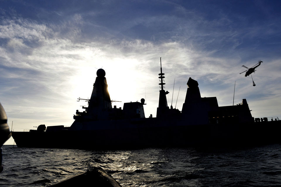 A Lynx helicopter from 815 Naval Air Squadron leaves HMS Daring with another load of humanitarian relief supplies [Picture: Petty Officer Airman (Photographer) Paul A'Barrow, Crown copyright]
