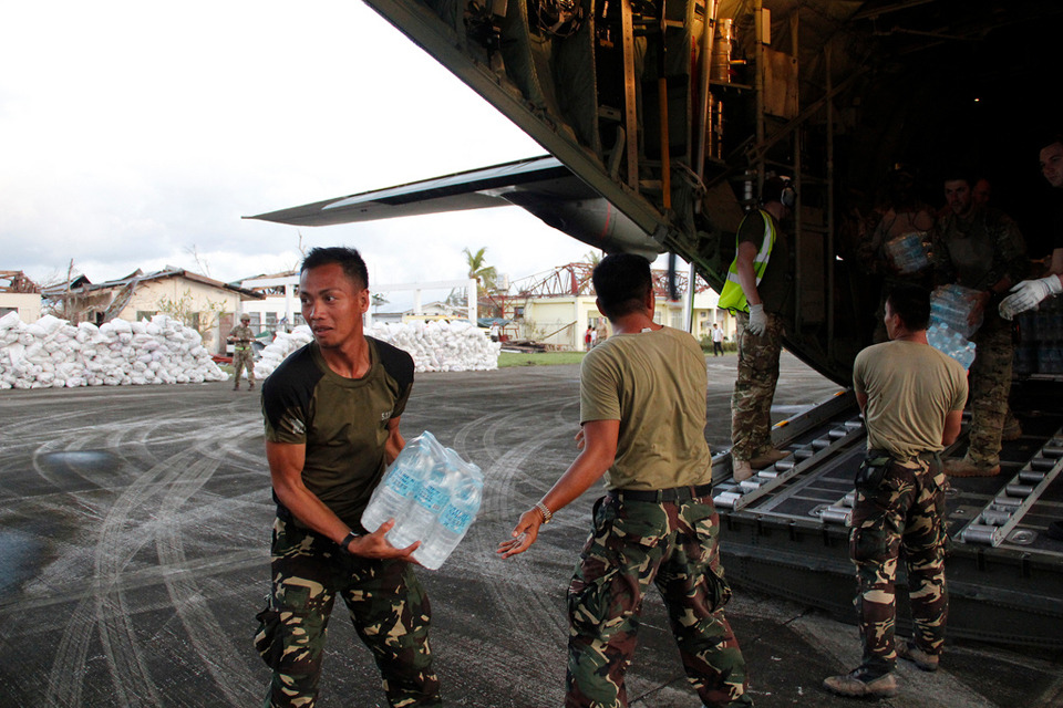 The Hercules can use short runways and unload at locations without cargo-handling equipment, which means that it can quickly move significant quantities of aid from Cebu to small, basic airfields around the typhoon-hit area.