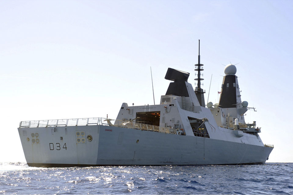 HMS Diamond pictured en route to the Gulf earlier in her deployment (library image) [Picture: Leading Airman (Photographer) Weatherston, Crown Copyright/MOD 2012]