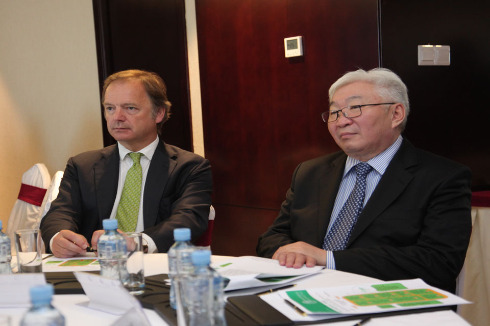 Minister Swire and Mr Bat-Uul, Mayor of Ulaanbaatar City, during TEST presentation on 22 May 2014 in Ulaanbaatar, Mongolia