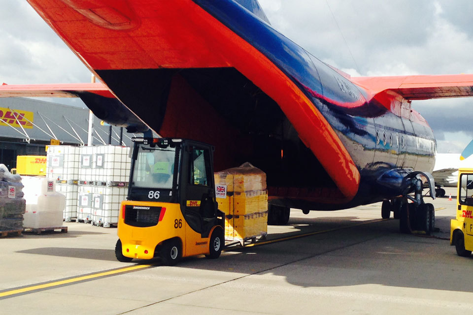 The supplies were flown from East Midlands Airport aboard an Antonov AN-12.