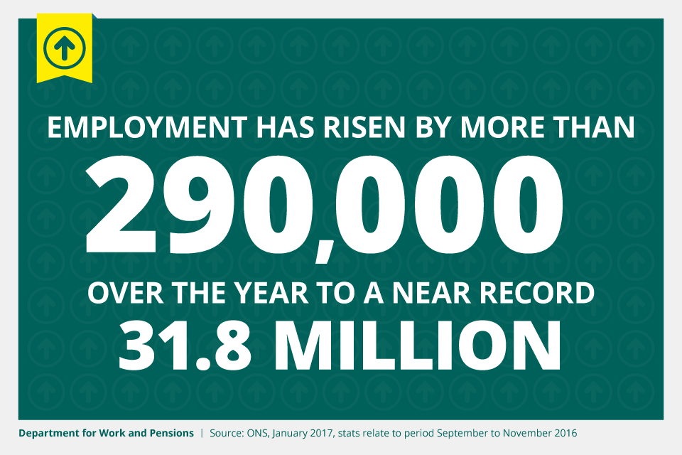 We start the new year with another encouraging set of figures. Employment continues to run at a near-record high, unemployment remains at an 11-year low and both figures are stronger than this time last year – highlighting the strength and resilience of our labour market as we step up to the challenges of 2017.