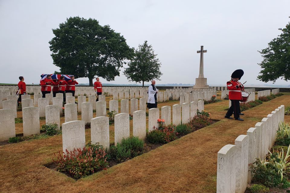 Today, this soldier of the Grenadier Guards has been laid to rest at the Guards Cemetery in Lesbeoufs, with honour and dignity. We will ensure his sacrifice is not forgotten and care for his grave in perpetuity.