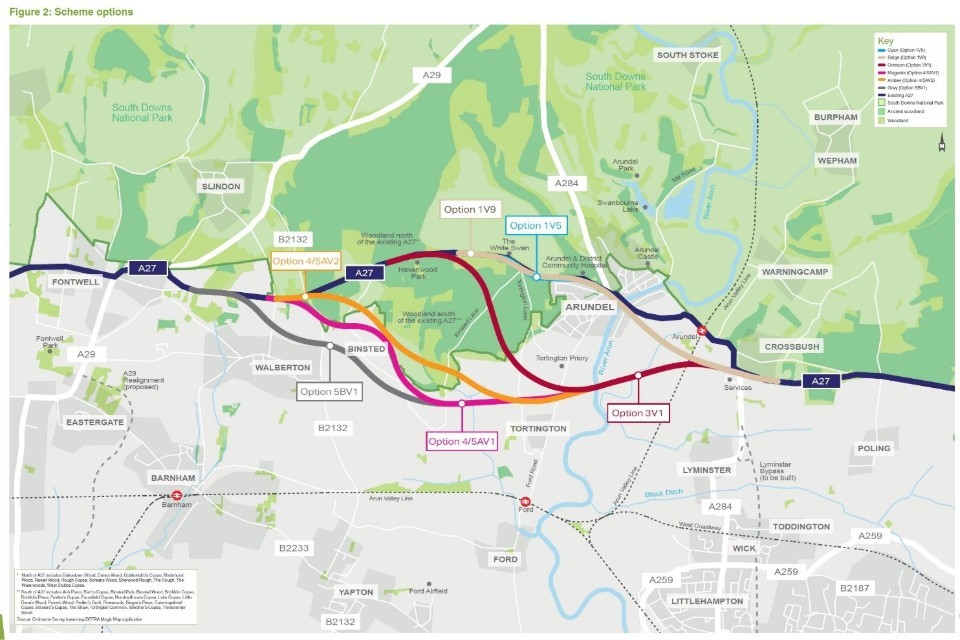 The plans will help improve journeys for tens of thousands of drivers using the A27 around Arundel, the only section of single carriageway between Worthing and the New Forest. Each option aims to protect Arundel’s historic town centre and draw long distance traffic away from other, less suitable roads through the South Downs National Park.
