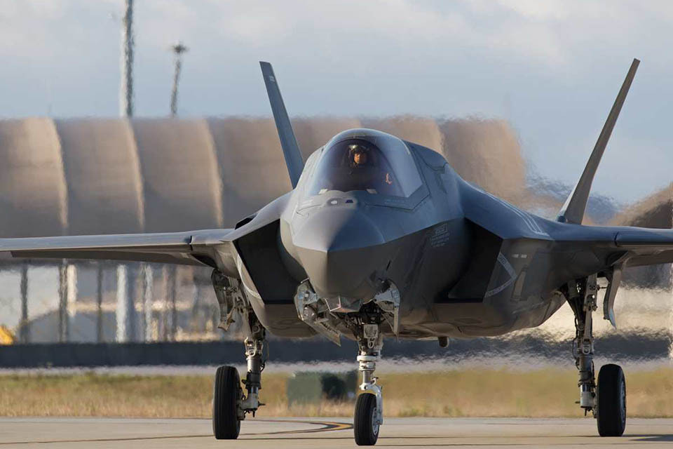 A UK F-35B Lightning II taxiing off from Eglin Air Force Base, Florida, USA’. [Picture: Harland Quarrington, Crown copyright]