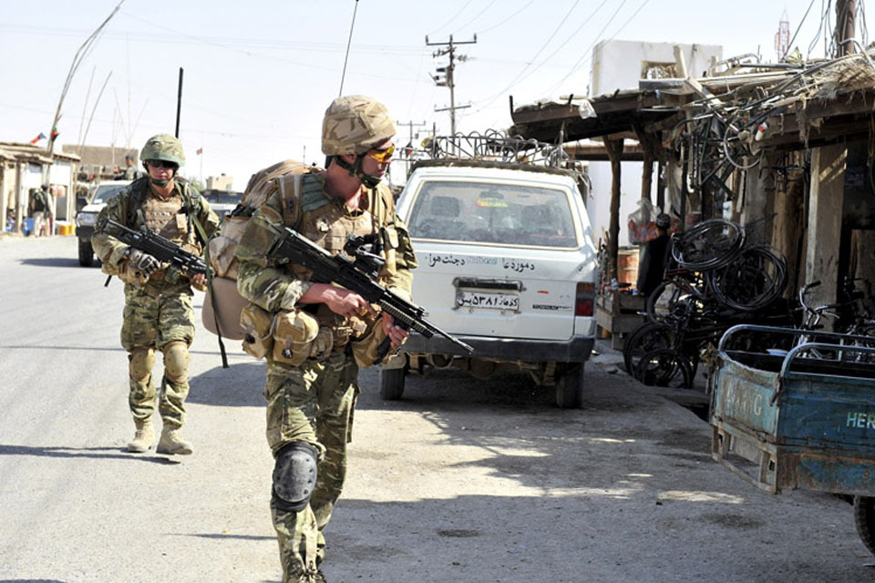 A patrol by the 40 Commando Police Mentoring Troop from Forward Operating Base Jackson in Sangin [Picture: LA(Phot) Si Ethell, Crown Copyright/MOD 2010]