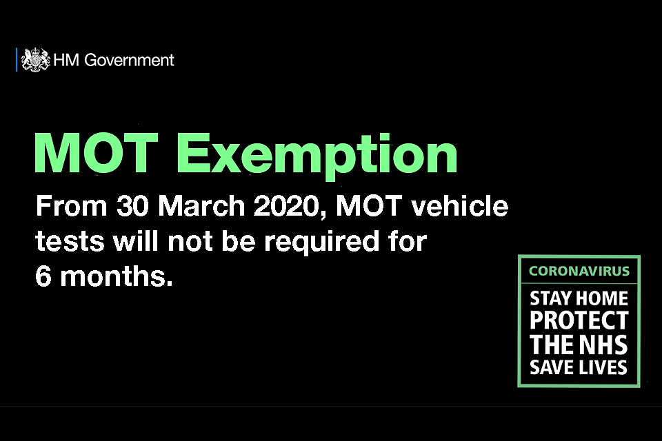 MOT exemption: from 30 March 2020, MOT vehicle tests will not be required for 6 months.