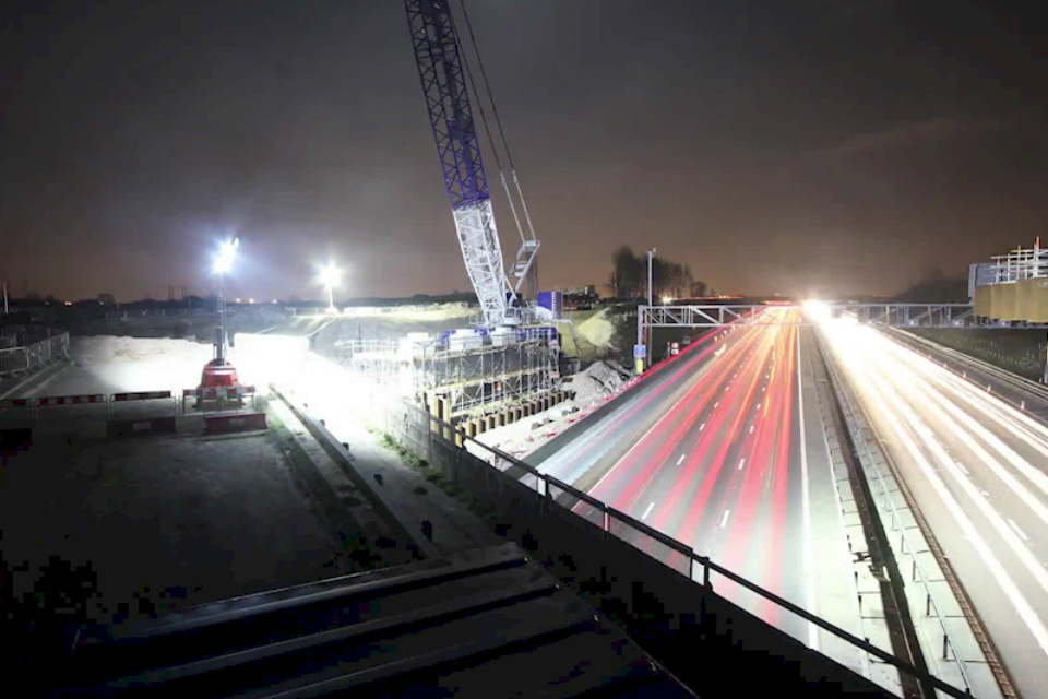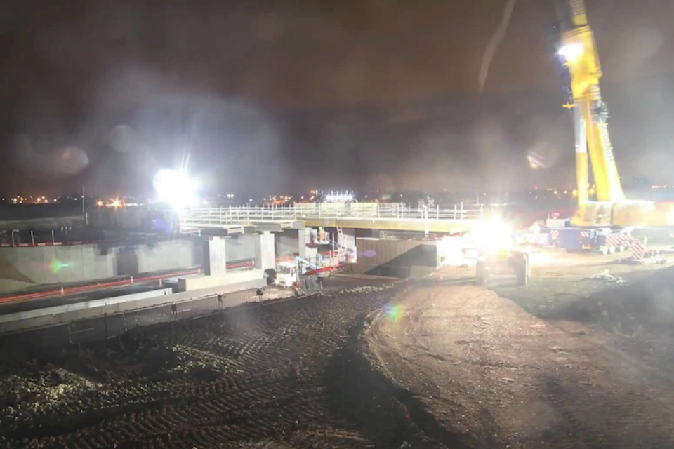 lifting beams for two new bridges over the M1 as part of the A5-M1 Link scheme