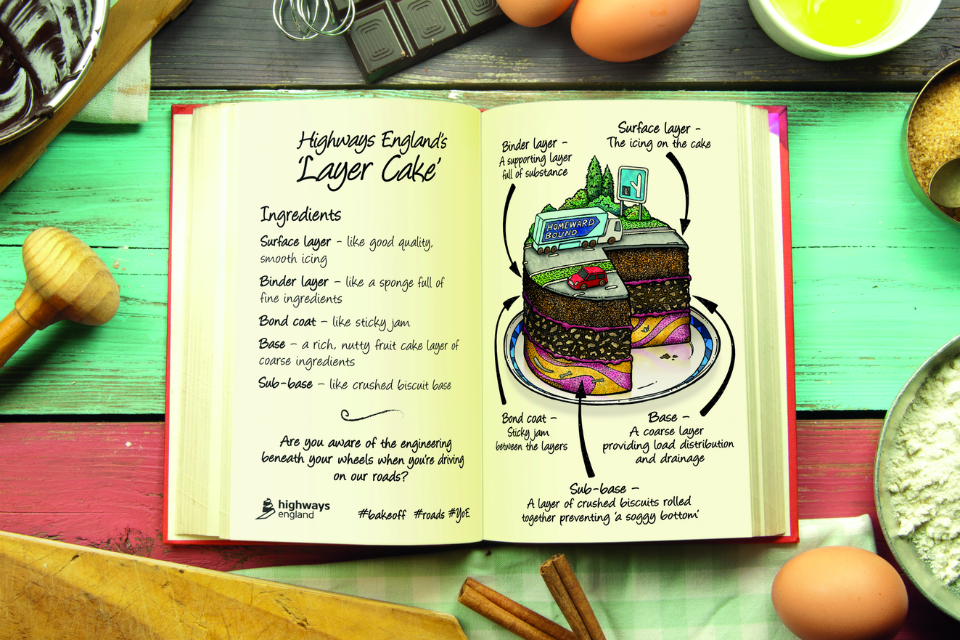 Building roads may seem a million miles from baking, but a good quality motorway, or major A road – those managed by us – is made up of many, distinctive layers, all with expertly picked and mixed ingredients.