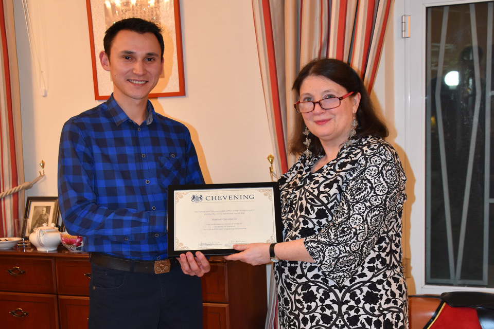 British Ambassador presents certificate to Maksat Danatarov