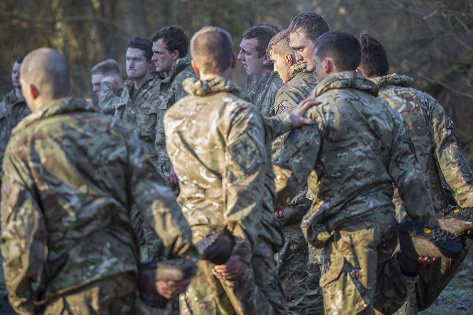 Instead of snuggling down in a king size bed they’ll be sleeping in shifts in freezing conditions under wet leaves, melting into the landscape while keeping an enemy helicopter under observation, getting up at first light to speed march six miles in an hour carrying 21 pounds of webbing and a rifle, and learning the fine art of fighting as one of Britain’s elite.