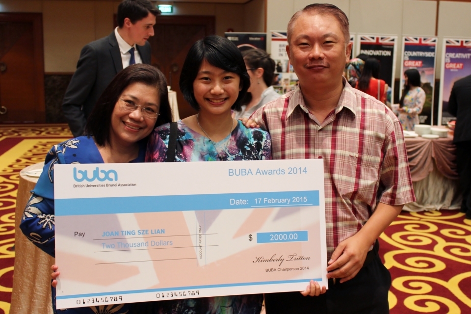 2014/15 BUBA Awards first prize winner Joan Ting Sze Lian with her parents