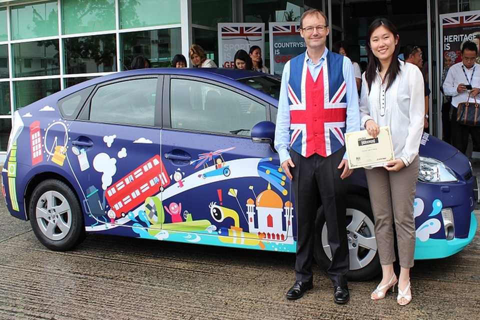 The competition, organised in collaboration with the iCentre and open to everyone in Brunei’s talented design community, was to create new artwork to decorate the High Commission’s Prius – replacing the vivid rainforest hues (designed by ISB students) which the car has sported for two years.