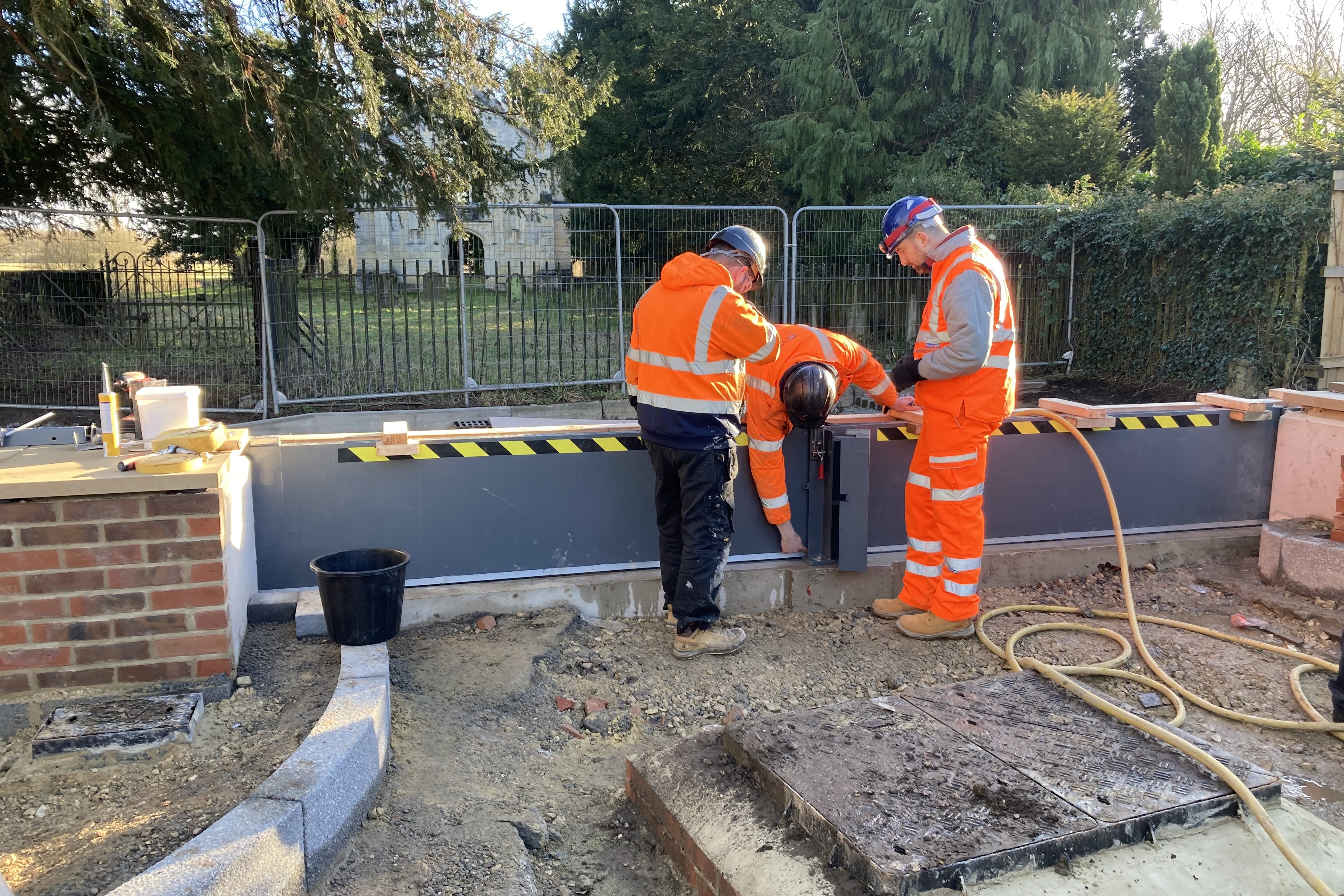 Work on the scheme started in May 2021 to construct a 180 metre flood defence wall running along Chantry Lane and the boundary of the Bishopthorpe Palace grounds, incorporating a six metre-deep steel barrier underground; a floodgate across the bottom of Chantry Lane and water flow mechanism to prevent river water from backing up into the drainage system.