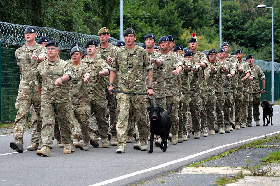 Soldiers and dogs of 104 Military Working Dog Unit arrive back at North Luffenham [Picture: Corporal Gabriel Moreno, Crown copyright]