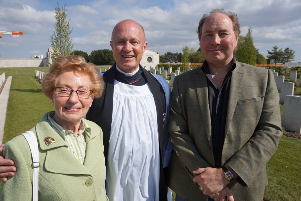 Great niece Sandra Harper with her son and Rev Justin Bradbury, Crown Copyright, All rights reserved