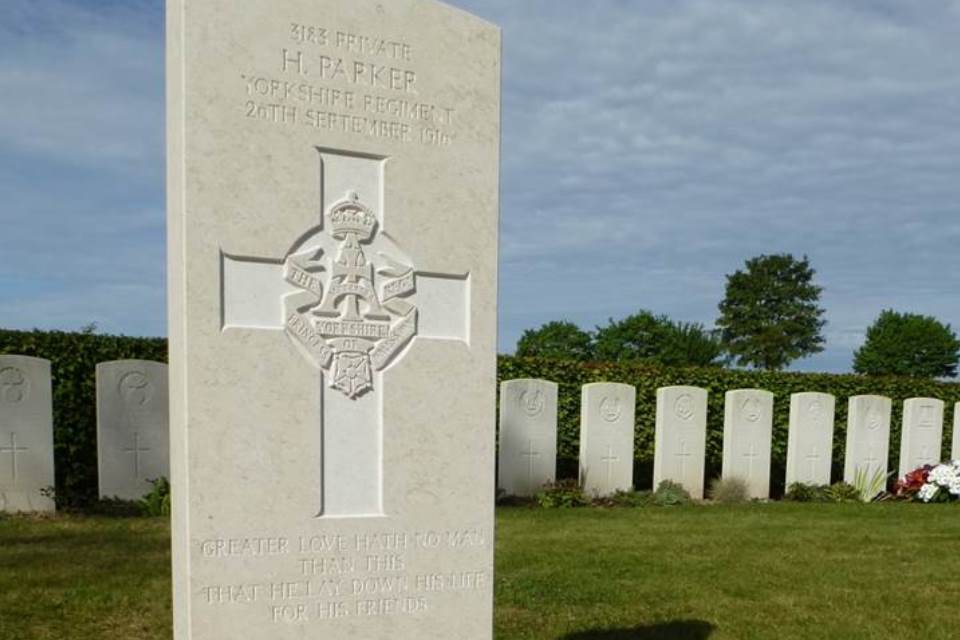 Private Henry Parker, 5th Battalion The Yorkshire Regiment, has finally been laid to rest after he was killed in action during the Battle of the Somme on 26 September 1916, just 3 days short of his 23rd birthday. The burial, with full military honours, took place on Wednesday 17 May 2017 at the Warlencourt British Cemetery, near Arras, France.