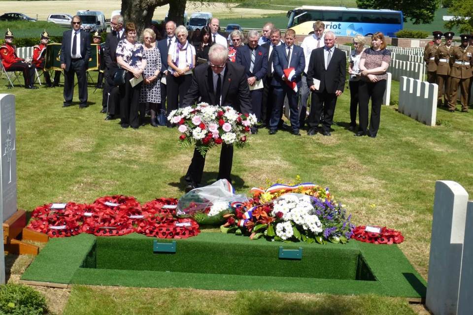 We would like to thank the Joint Casualty and Compassionate Centre of the Ministry of Defence for inviting us to the burial ceremony here in Warlencourt, and feel very humble to be part of this occasion and extremely proud of our Great Uncle.