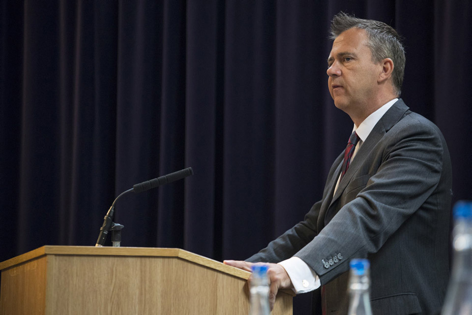 Minister for the Armed Forces Mark Lancaster speaking at RUSI event. MOD Crown Copyright.