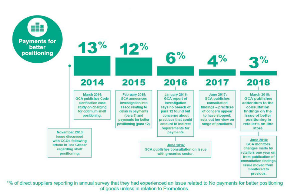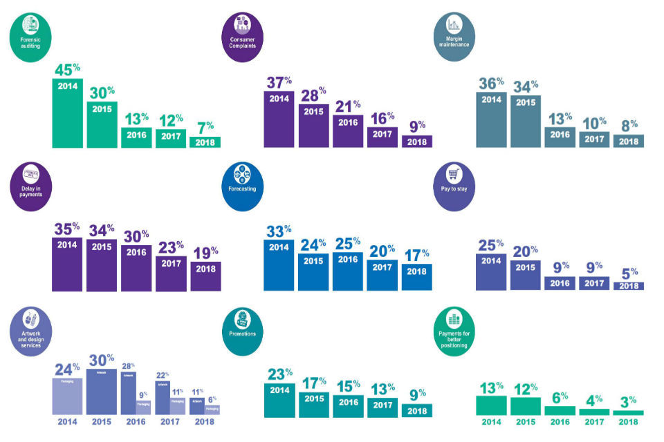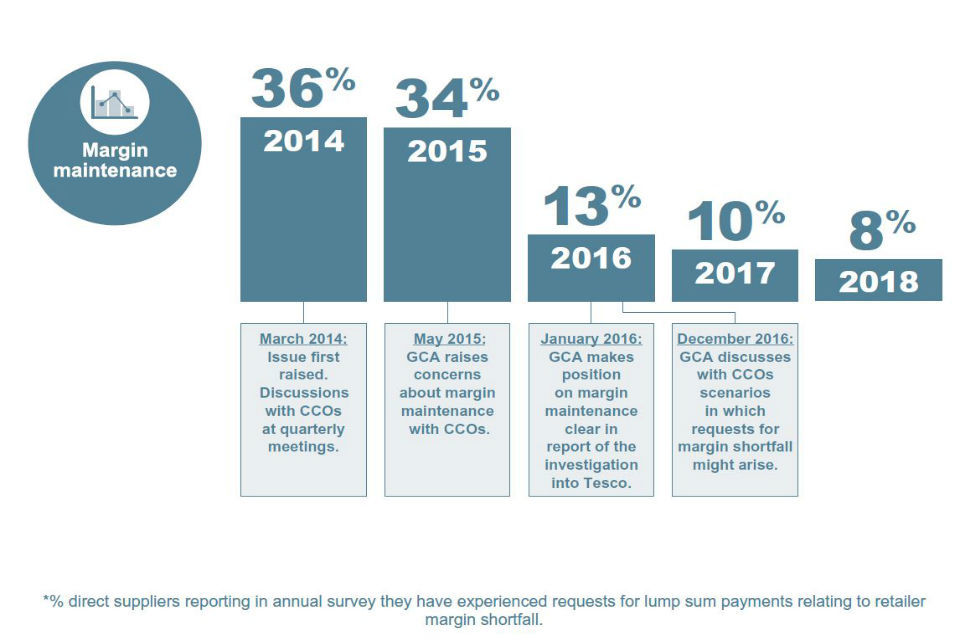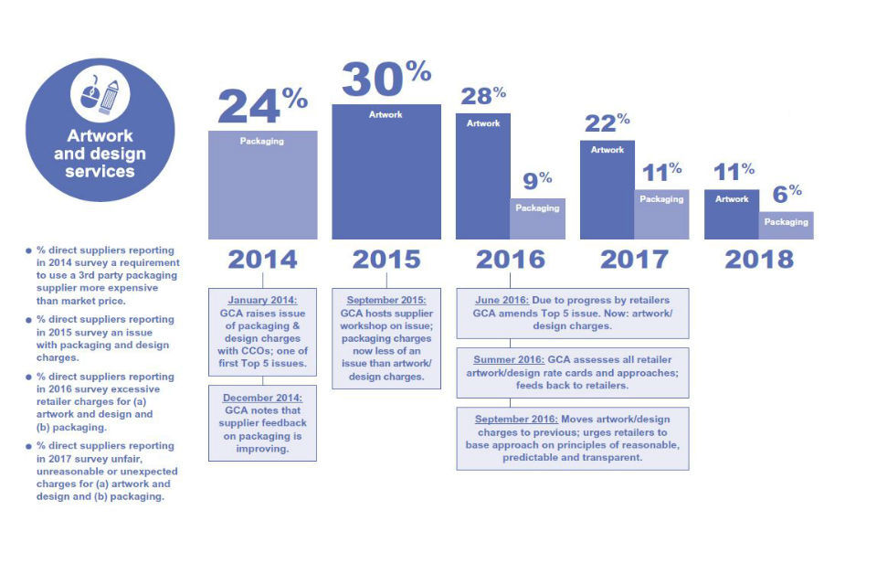 The overall improvement is shown very clearly in my “jack slide”, which represents in graphic form how far we have come in the GCA’s five years of existence. Each year I ask suppliers to rate retailers’ compliance with the Code and in 2018 only two retailers were rated below the level of the very best performing retailer in 2014.