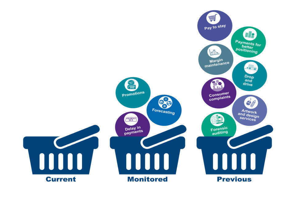 - Inclusion of terms of supply notified only after Supply Agreement has been negotiated and terms agreed (particular to new suppliers); administration charges for trading accounts; product testing; packaging/artwork charges
