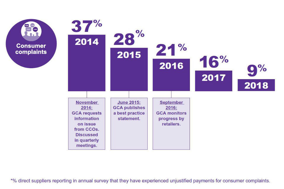 The ultimate goal of the GCA is to promote a stronger, more innovative and more efficient groceries market through compliance with the Code and, as a result, to bring better value to consumers. The GCA is working with suppliers and the regulated retailers to respond to issues rapidly and relies on suppliers and others to bring evidence of non-compliance quickly to the GCA to achieve this goal.